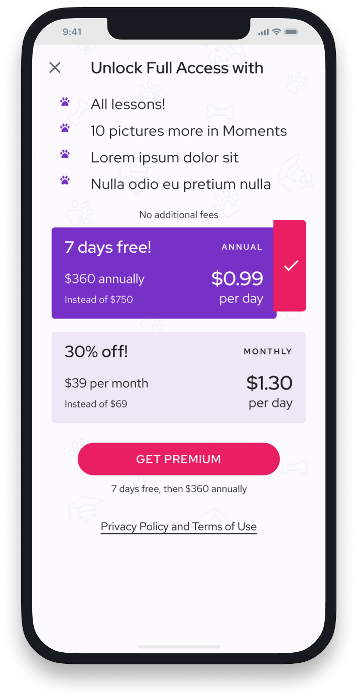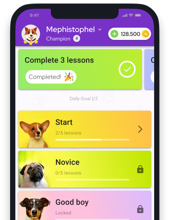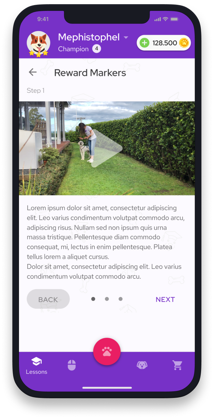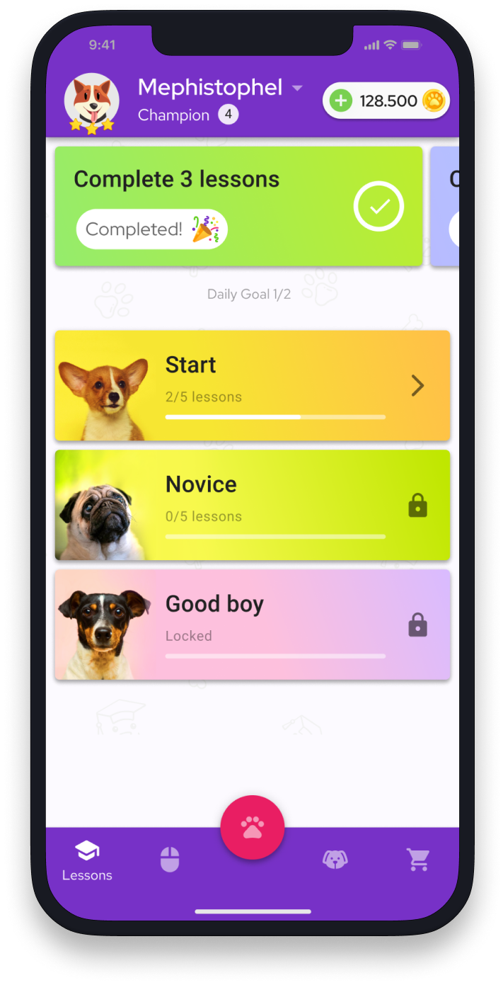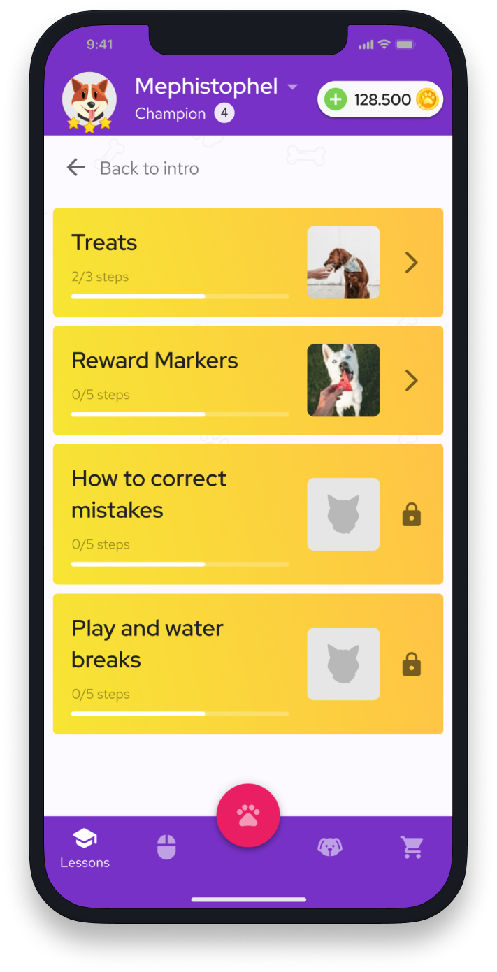 Easy-to-use app with video lessons to train dogs and track their progress in an interactive way.